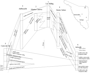 Correlacione (lito-,bio- o cronocorrelacione) secciones descritas en el área de